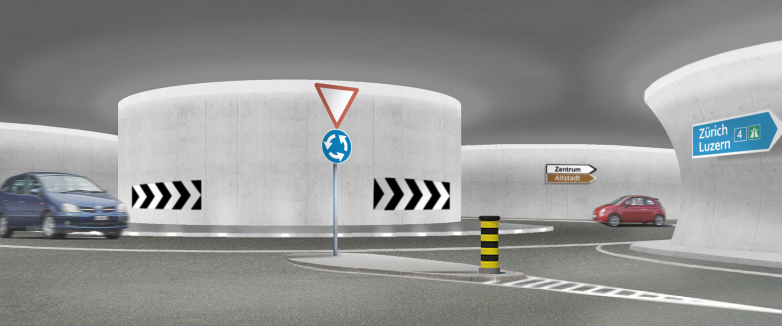 Hauptbestandteil der baulichen Massnahmen bildet ein komplexes, insgesamt ca. 2.7 km langes Tunnelsystem bestehend aus 4 Tunnelästen, welche in einem unterirdischen Kreisel mit angeschlossenem unterirdischem Bypass zusammenlaufen. Die einzelnen Tunneläste werden teilweise im Tagbau erstellt und teilweise bergmännisch aufgefahren. Für den Bau des unterirdischen Kreisels wird von der Oberfläche aus ein Schacht mit 58 m Durchmesser und einer Tiefe von rund 40 m erstellt. Für das Tunnelsystem sind mehrere Betriebszentralen vorgesehen. Die Tunnellüftung erfolgt über eine Kombination aus bergmännischem und im Tagbau erstellten Lüftungsstollen.
