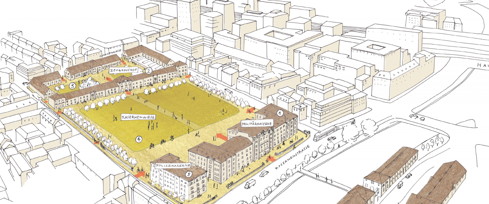 he barracks site in Zurich is to be transformed in the coming years into a highly accessible and lively location that accommodates a variety of public and private interests. In order to enable this, a site development plan was devised and used as a basis for the drafting of a master plan for the future development of the barracks site.