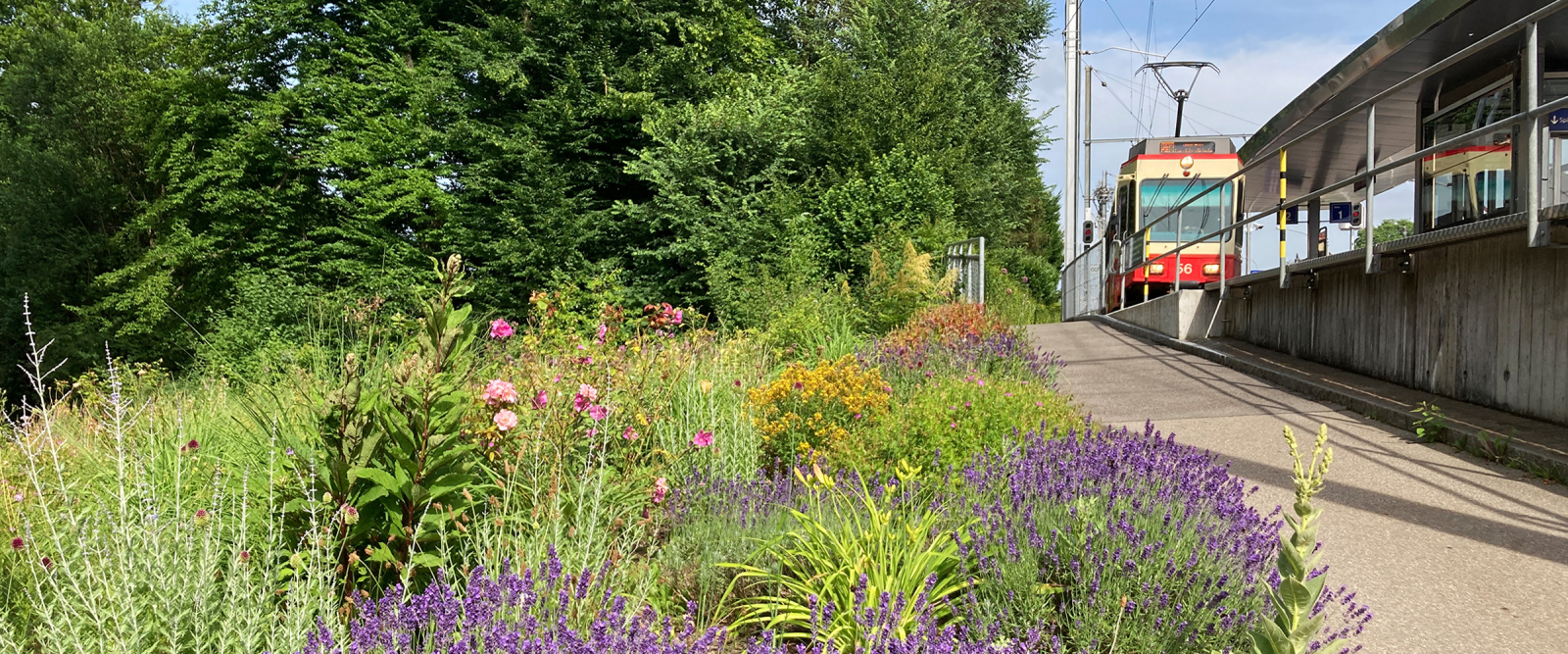 Main Image: Biodiversity zone adjacent to the Spital-Zollikerberg Station