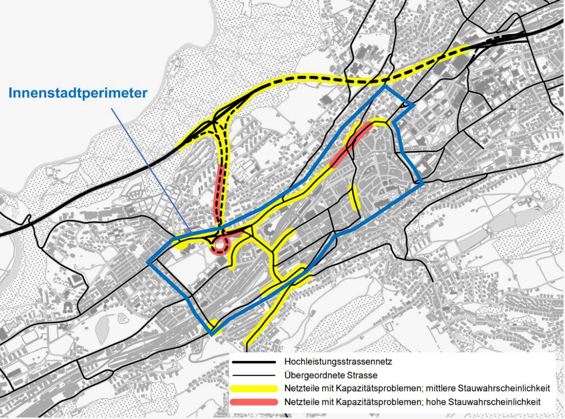 To draft an MFD on the basis of detector data, EBP first worked out an appropriate evaluation method. We then applied this to the city of St.Gallen and tested its plausibility. A number of sections of the road network in St.Gallen’s city center show an especially high probability of congestion during peak hours.