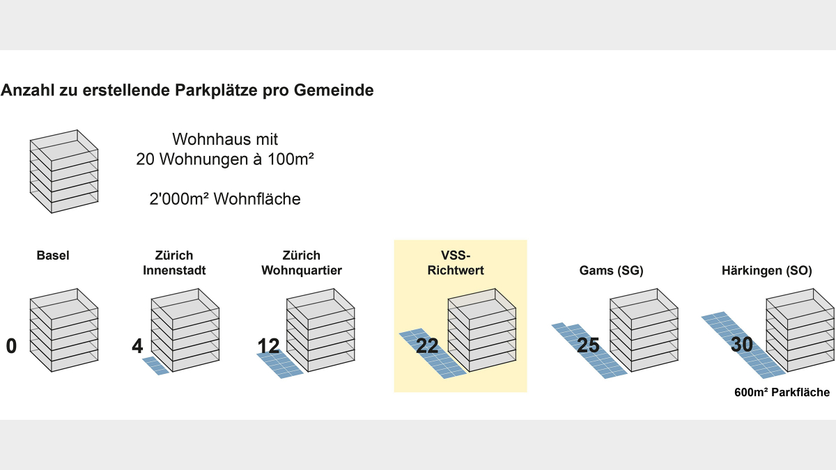 However, the interests involved are to some extent in flux. In large cities today, fewer than half of all households have access to their own vehicle. It follows that builder-owners in such urban areas, as well as in other areas offering easy access to public transportation, have begun to prefer building fewer parking spaces than the numbers specified in city and municipal regulations. As it turns out, underground parking spaces are expensive and difficult to rent out at cost. A recent analysis of rental agreements accounting for 21,000 properties indicates considerable rental losses for investors in new construction projects. Indeed, real estate experts see a need for action. The largest rental revenue shortfalls for parking spaces are seen in small and medium-sized agglomerations. In certain circumstances, some cantons and cities have already begun to encourage the realization of fewer parking spaces than the reference number.