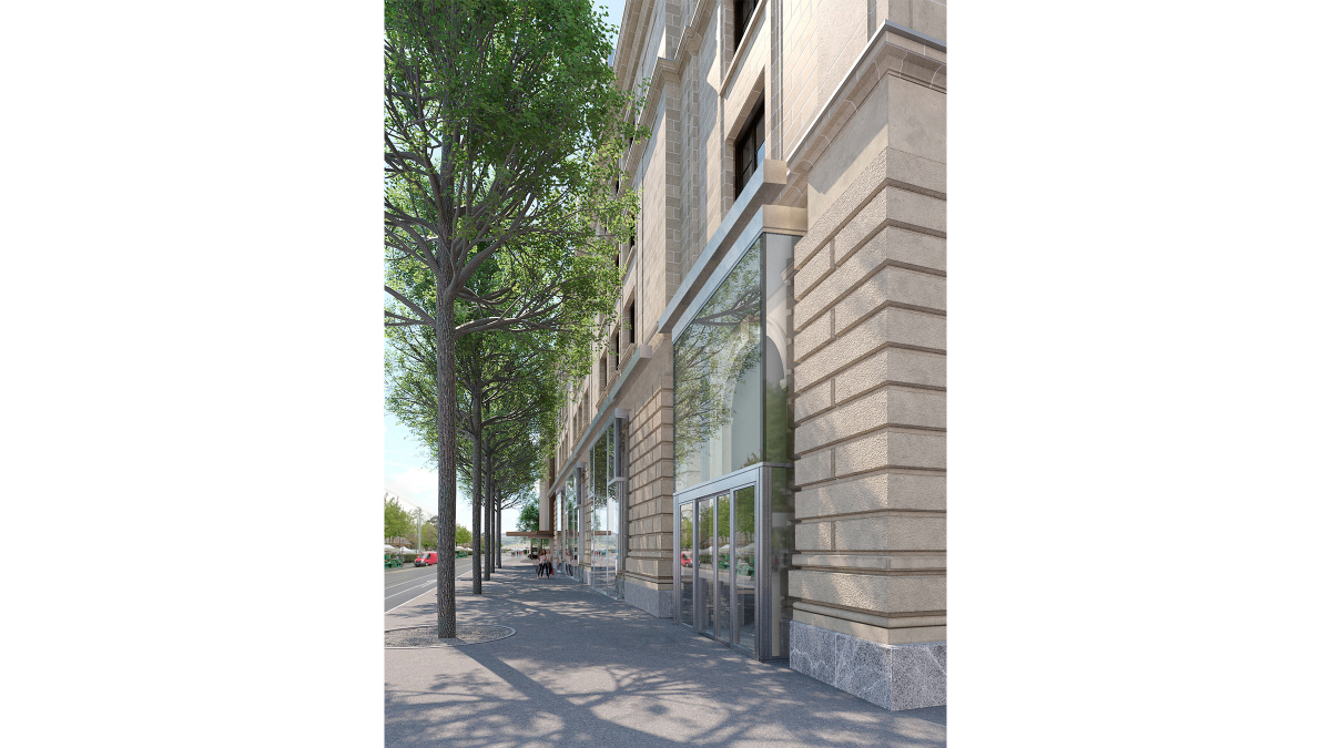 Working together in a consortium with EBP, the Studio Märkli architectural firm won the design competition for this extensive renovation in 2015. Over the course of the project, the ground floor was lowered to the level of Bahnhofstrasse, the building’s basement was expanded into two new underground levels, and the building was topped off with a two-level penthouse structure. The main challenges we faced as we planned the façade included ensuring compliance with the historic-preservation statutes and meeting the demanding materials/aesthetics specifications.